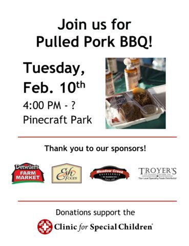 Join us on Tuesday, February 10th, at Pinecraft Park in Sarasota, FL, for a pulled pork BBQ fundraiser! All proceeds will benefit the Clinic for Special Children.
