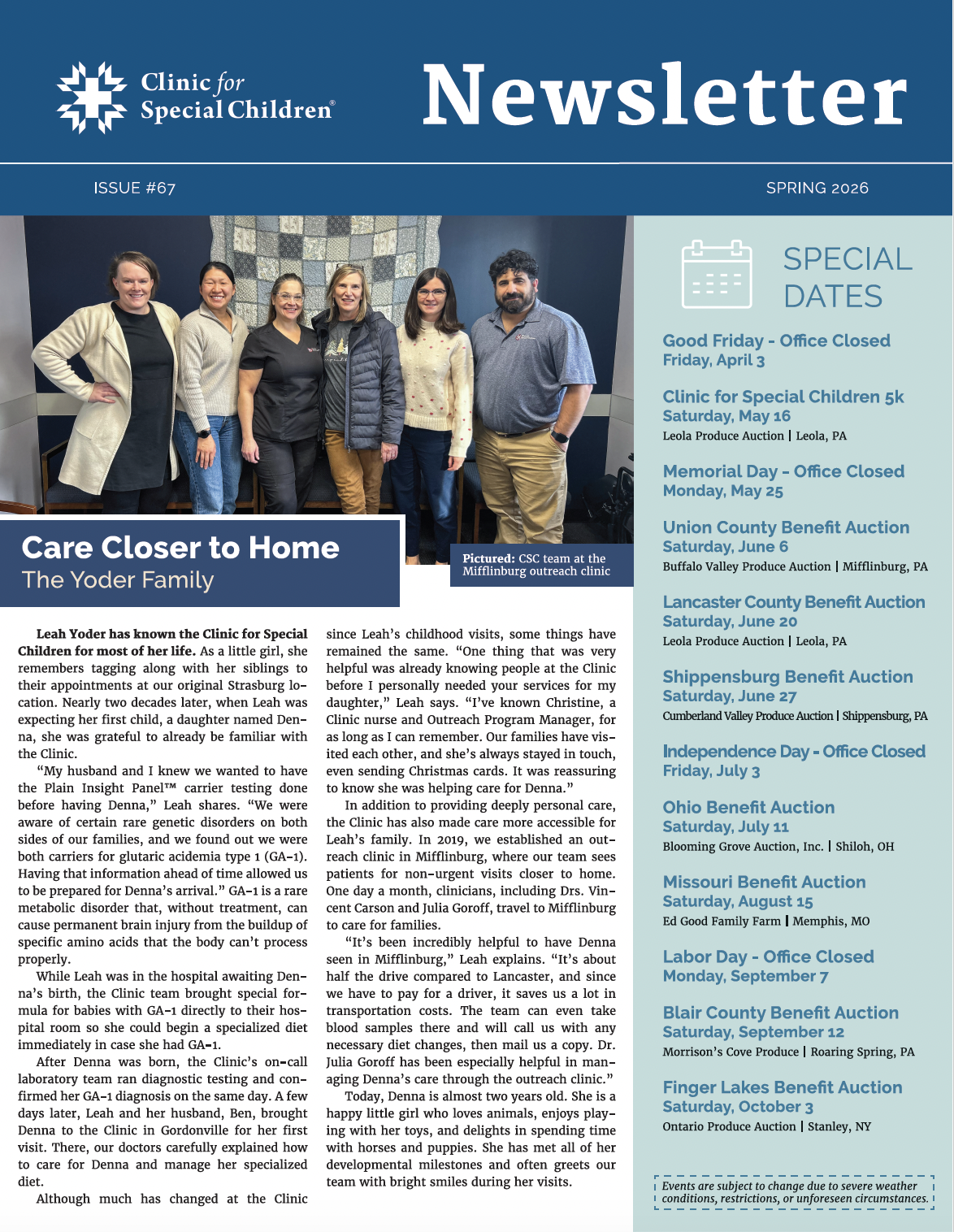 Clinic for Special Children Newsletters